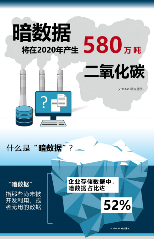 北京– 2020 年 4月24日—— 数字化可在一定程度上改善全球气候变暖,但在数字化进程中,无用数据的大量堆积往往造成更多能耗,使碳排放问题加剧。根据全球数据保护及数据管理领域的领导者Veritas Technologies的数据显示,暗数据每年可产生逾580万吨碳排放。若想抑制温室效应,企业或可从数据分类,清除暗数据着眼。
