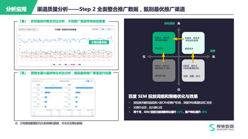 很多企业的渠道分析由市场部负责。以神策数据来说,渠道质量分析可划分为几步: