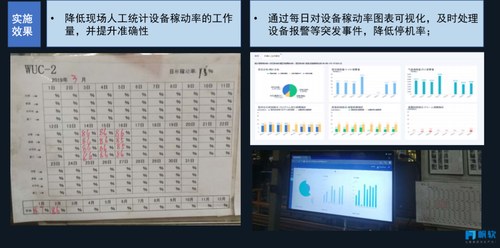 借助这样的可视化大屏展示,企业可以实时确认设备运转情况,以往设备的稼动率常常由制造现场人工进行统计,通过可视化图表,能够及时处理设备异常等突发事件,及时响应,提高设备能效;同时对于作业者效率的统计和展示,一方面可以加强内部人员的绩效管理,另一方面有助于通过焊材的使用量进行采购计划的优化,通过设备开通率把握制造车间的生产能力,进行合理高效的生产排期。