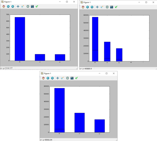 由于本题中提供了90w未标记数据,为了充分利用数据,我们利用伪标签法,使用已训练的模型对90w数据进行一次性预测,生成标记结果,然后从90w数据集中选取置信度较高的混入到标记数据中进行训练。同时我们还多次调整了混合比例,但发现该方法提升不明显,分析原因如下图7所示:图中为预测第三列(-1,0,1)数据分布,可见0(中性)的分布和1、-1两类相比有很大不同,说明要判断为1和-1的数据置信度较低,当该数据混入原标记数据中训练的时候会将误差放大。