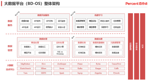 主要以各部门之间数据交换共享为主,保证数据共享过程中的稳定和安全。按照以上不同的数据应用需求,结合百分点自有的产品以及使用的大数据开源组件,我们构建了数据中台的5大信息库: