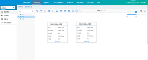 应用BD-OS模型开发模块,开发可以通过可视化配置的方式进行层级/主题域划分,按照分层对逻辑模型配置逻辑表和表字段,生成对应的物理模型并进行物理表管理;也可以直接在数据库中创建物理表后,通过逆向工程生成对应的逻辑模型。海外项目中将模型分层划分为STG、ODS和DW层,实现对数据的标准化处理和规范化管理,满足应用端对数据的业务需求。