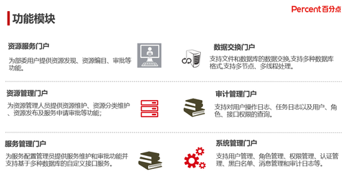 利用百分点数据共享交换平台,构建数据资源,对外提供安全、清晰的数据资源目录,同时提供文件、数据库、API等多种对接方式进行内外部数据交换。