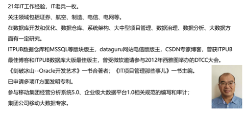 目前在南方电网旗下某IT公司任职的王保强主要负责数据治理工作,拥有21年IT工作经验,曾在海南移动负责数据仓库、大数据平台等项目,见证了从传统数据仓库转型到大数据平台的全历程,见证了大数据平台从0到1的全部过程,对数据中台也有自己独特的思考。