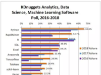 近日,著名数据科学网站 KDnuggets 发布了 2018 年数据科学和机器学习工具调查结果。超过 2000 人对自己「过去 12 个月内在项目开发中使用过的数据挖掘/机器学习工具和编程语言」进行了投票。该统计还对过去三年来的排名进行了对比分析。